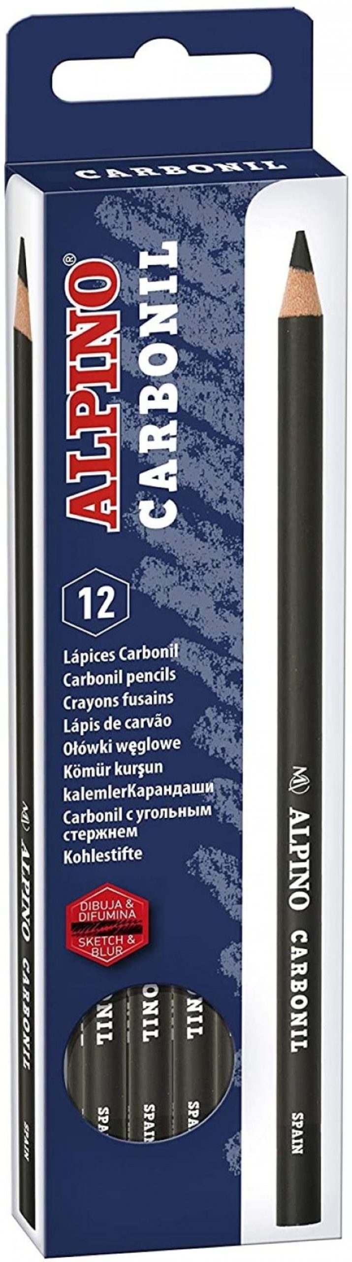 Caja de 12 lápices carbonil de dibujo con mina carboncillo para bocetos y dibujos.