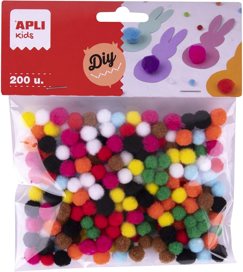 BOLSA POMPONES MINI SURTIDOS 200 UNIDADES