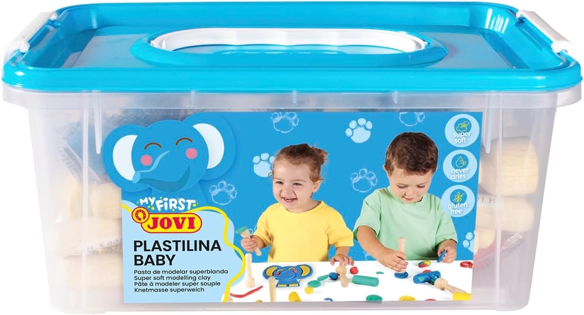 Baul 20 tacos plastilina Jovi 38g surtidos + 9 sellos madera my first plastilina baby