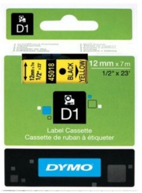 Cinta Dymo S0720580 para etiquetadoras Dymo. La cinta autoadhesiva es de poliéster y duradera. Es adecuada tanto para uso doméstico como de oficina. Esta cinta estándar D1 tiene un ancho de 12 mm y 7 metros de largo.